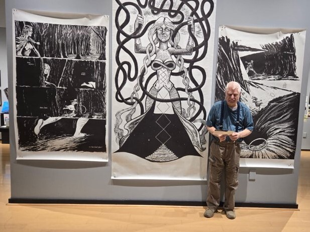 Tyler participates in a mixed media art class at Carroll Community College.